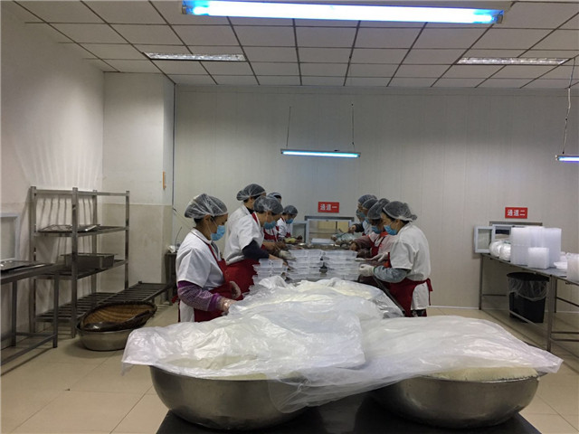 在食品安全方面,芊村道进行了严格把控。芊村道中央厨房有2个生产车间,共4条生产线,占地面积1200平米,由冷藏库、蔬菜切配间、烹饪区、菜品分装间、餐盒封装车间等多个单元形成一套严密的餐饮作业“闭环”。从田间和市场进材、检验检测、验收、粗加工、精加工、烹饪、留样、包装、配送等各环节的层层品质监控把关,确保食品质量安全,每天早上十点开始,制作好的饭菜就会陆续的完成封装。为避免餐具污染,中央厨房采用PP材质制作的一次性餐盒,封装完成后,再用特殊的保温箱转运,按照距离的远近,由专门的物流配送车配送。在确保复工复产工作有序进行的前提下,中央厨房严把严控,每日早晚两次针对办公区域及生产区域消毒,进出车辆逐车消毒,对返岗员工采取全封闭式管理,全面立档排查,每日早、中、晚3次测量体温,确保食品卫生安全及一线生产员工的健康。
