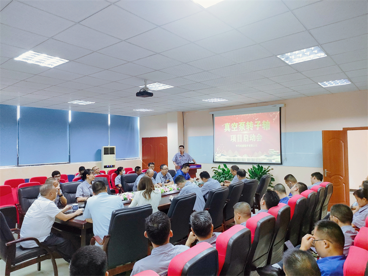 项目经理代表彭凯对该项目做了汇报。他介绍到:团队在才刚开始接触这个项目的时候,内心是没有多少把握的。但是接受挑战是公司转型的必经之路,这条路必须走。在项目的策划过程中,也遇到了很多的问题,现有设备的规格,能够承受的重量,都与生产真空泵转子轴所要求的条件有一定差距。为此,所有人都在项目策划过程中找问题,解决问题,其过程中深刻体会到,一个项目不是能够单靠个人英雄主义来完成的,它更为需要高层的指导以及多功能的团队作战。从策划到设计到现场操机、设备、工装支持,采购支持这一系列的成员都缺一不可。本次启动会,项目组都感受到新的机会和大的压力,大家纷纷表示,要立足现有设备,精心策划,控成本,保质保量完成订单,为项目开一个好的头。