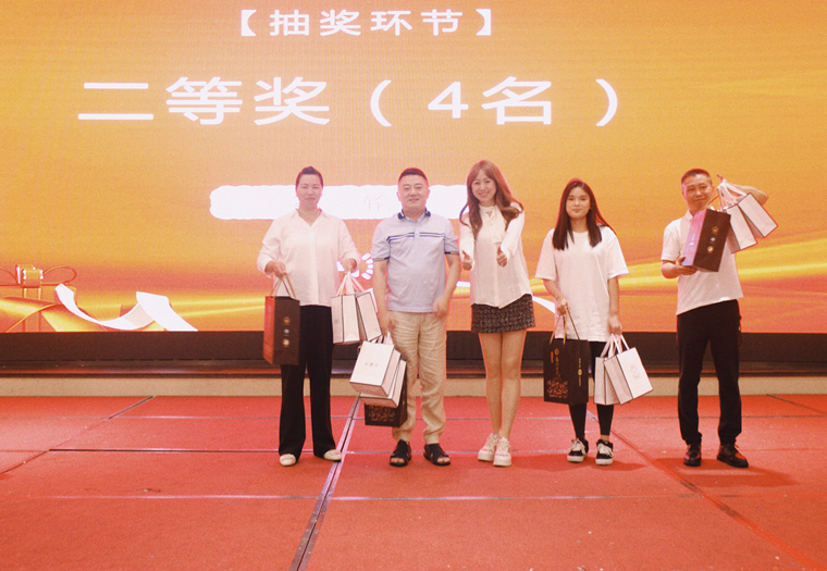 晚会现场,在同仁们表演的过程中,最令人期待的环节便是抽奖环节,不仅是自己的一份幸运,也能够沾沾夏主席生日的喜气。本次抽奖环节共设置了23个名额,三等奖16名,二等奖4名,一等奖1名及特等奖1名。抽奖现场欢呼声连连,热闹非凡。