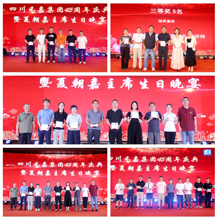 晚会现场表演的过程中,最令人期待的环节便是抽奖环节。在集团45周年庆典暨夏主席生日晚宴上,被抽中者一定是最幸运的。本次抽奖环节共设置了40个名额,三等奖34名,二等奖3名,一等奖2名及特等奖1名。