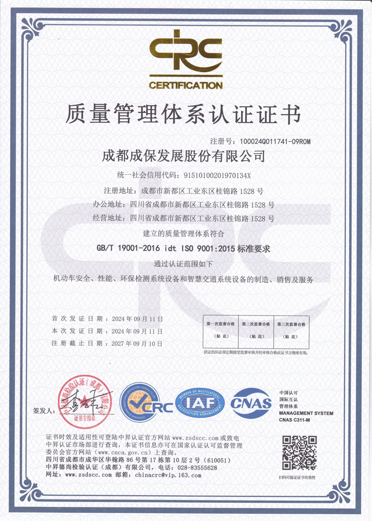本次认证的顺利通过,不仅是对成都成保现有质量管理实践的认可,更是对未来持续改善、追求卓越精神的激励。公司将借此机会启动新一轮的质量改进,特别针对审核过程中发现的问题制定详细的整改计划,明确责任人和时间表,确保改进建议有效落实。公司将进一步整合资源,优化流程,强化培训,深化质量管理体系的应用和完善,助力公司整体运营高质量发展迈上新台阶。