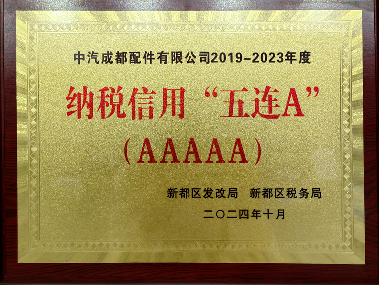 中汽成配作为中国凸轮轴行业的领军企业,一直致力于提供高质量、高性能的产品,赢得了市场的广泛认可。公司以技术创新和卓越品质为核心,不断推动企业的可持续发展。中汽成配在纳税信用等级评定中连续五年获得A级,充分展现了公司在税务合规、财务管理和法律遵从等方面的良好表现。
