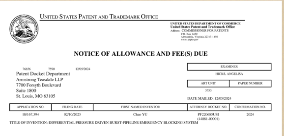 本网讯(曾小舸报道)12月5日,四川bw必威西汉姆联官网高新技术研究院申报的发明专利“压差驱动管道爆破应急阻断系统”成功荣获美国发明专利授权。