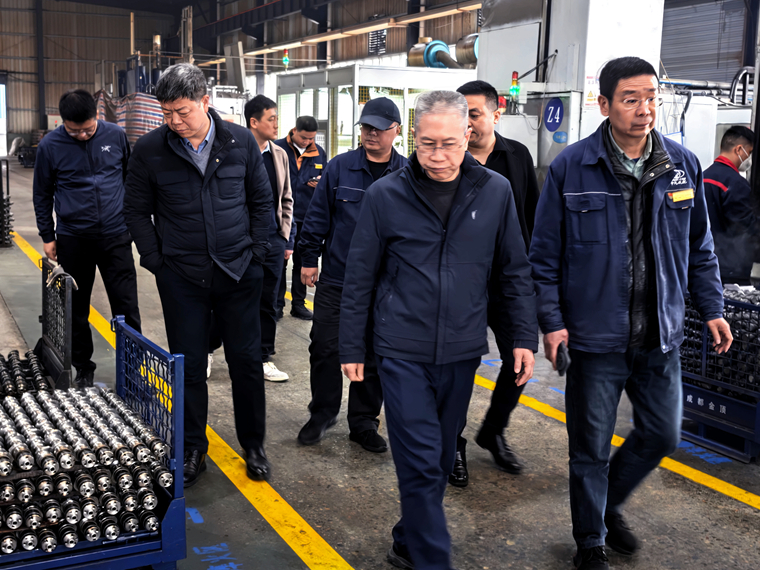 在中汽成配总经理余超等人的陪同下,来宾一行首先参观了中汽成配的展厅,通过展示的企业的核心产品和技术创新成果,凸显了中汽成配在行业中的领先地位,来宾们对展出的各类产品表现出浓厚兴趣,不时提出问题并与讲解人员交流,对企业的研发实力和市场前景给予了高度评价。随后,走访了中汽成配的凸轮轴生产线,特别细致地观摩了凸轮轴从毛坯到成品的整个生产过程,关注了每个关键工序的技术细节和质量检验标准。张书记表示,通过此次参观中汽成配的核心产品和技术创新成果,对双方的合作更加充满信心。