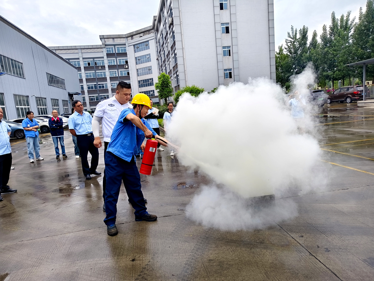 演练环节中,教官现场演示干粉灭火器、水基灭火器、灭火毯及车用破窗锤的正确使用方法,着重讲解了干粉灭火器的“提、拔、握、压”四步操作法。随后参训人员分组模拟火源扑救,通过“一对一指导+实战操作”的模式,实现95%参训人员掌握灭火器使用要领实战能力显著提升 。
