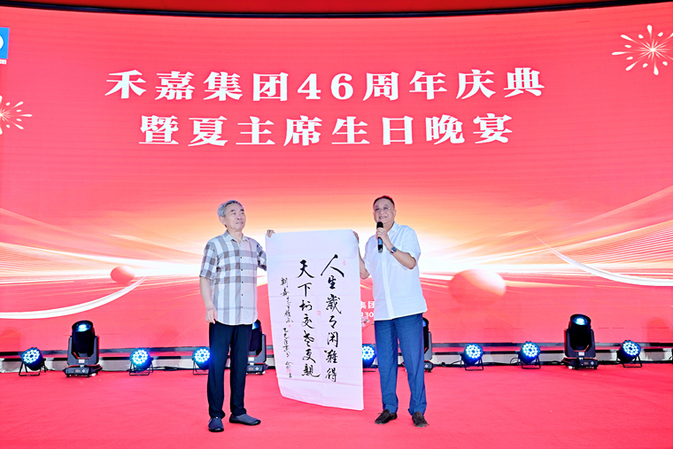 四川省委原副秘书长、书法家鄢正刚先生亲临现场并将其精心创作的书法作品赠予夏朝嘉先生,以笔墨为桥,传递对企业发展的美好祝愿,传递对夏朝嘉先生砥砺前行的敬佩以及福寿安康的诚挚祝福。