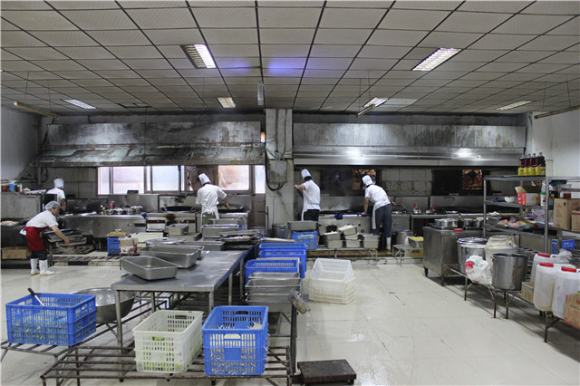 芊村道有3000平米的中央厨房和生产场地,设置具有与供应品种、数量相适应的粗加工、切配、烹调、食品冷却、食品包装、待配送食品贮存、工用具清洗消毒等加工操作场所,以及食品库房、更衣室、清洁工具存放场所。