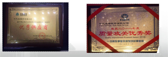 从成绩方面,2018年中汽成配获得“中国重汽优秀供应商”、“一汽锡柴质量优秀奖”,这是客户对公司在产品质量、交付、售后服务等方面的认可。