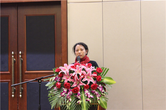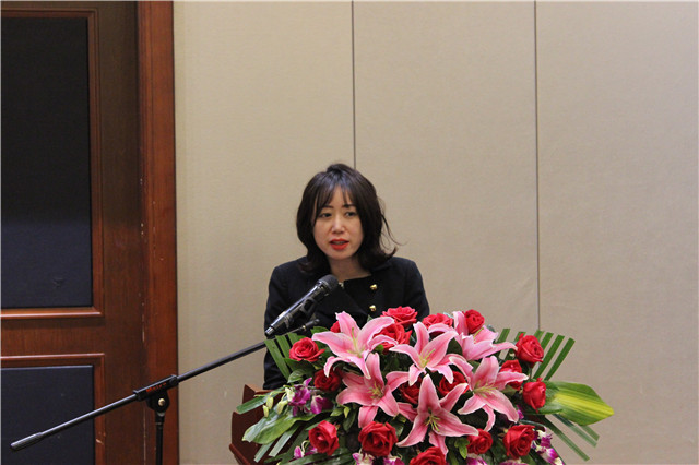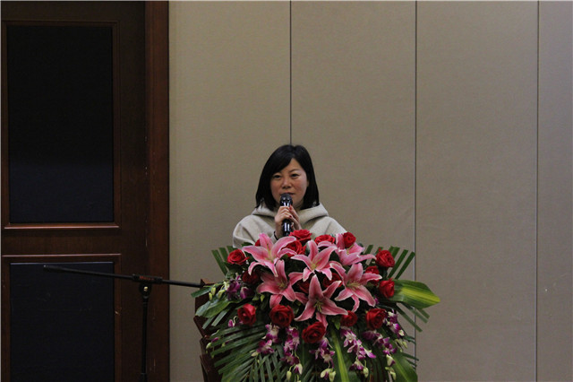 千江朗月公司总经理江铃发言,对16年至18年的经营情况进行了汇报,并制作了2018年在海外拓展市场的视频进行播放。