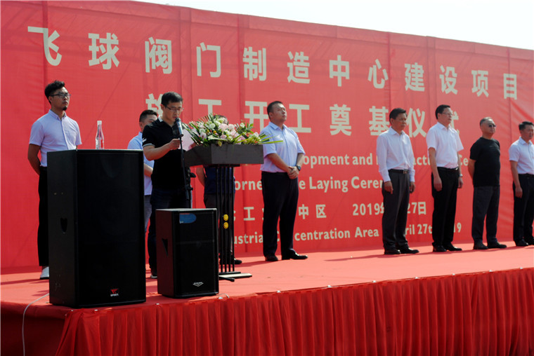 庆典仪式上,自贡市委副秘书长赖平发表了热情洋溢的讲话。他说:“飞球阀门制造中心”落地自贡高新技术产业开发区板仓工业园区,是对园区的充分信任。该项目的正式落户对飞球公司高压阀门品种提升都有极大的好处。对提升自贡市机械业的知名度、提高自贡市开发区的知名度都有益。开发区相关的部门要积极做好帮办服务工作,确保飞球公司在自贡市板仓工业园区快建设早建成、早达效。”
