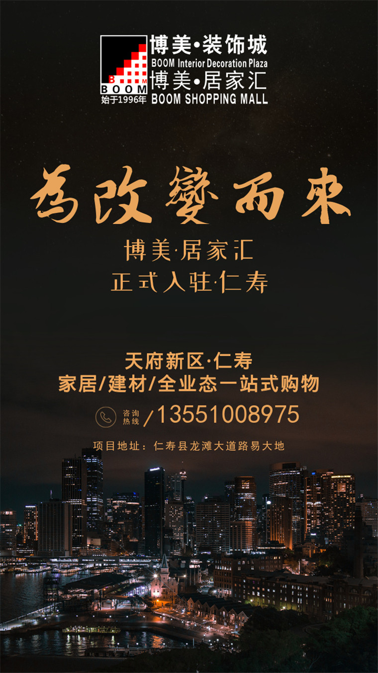 始创于1996年的博美装饰城,经过近23年的高速发展,已发展成为以居家商业地产投资与开发、招商与销售、策划与运营、直营与连锁为主的大型居家商业平台。博美是四川乃至西南地区具有较高知名度和美誉度的家居消费品牌,也是全国建材行业的先行者。未来,博美将扎根四川,辐射全国,继续把卖场和平台建到需要的地方去,倡导智能环保的生活方式。
