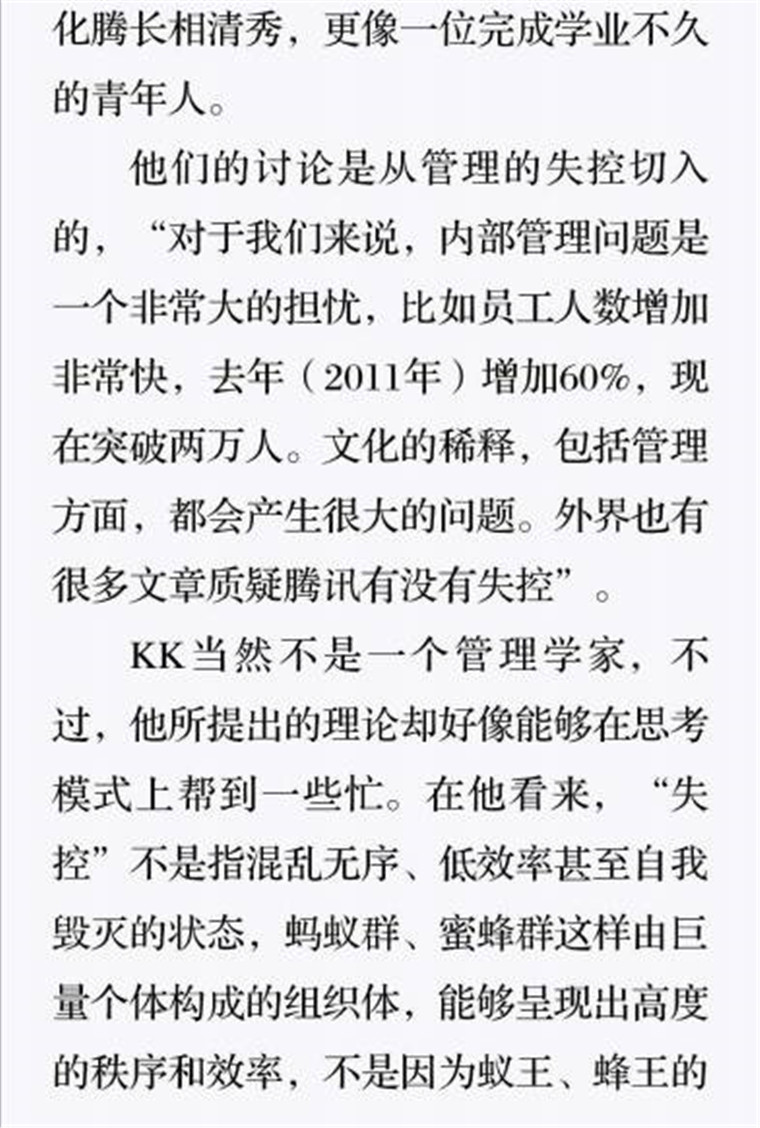 深读之后发现,其实全书真正的核心在于透过腾讯可以观察到的中国企业逻辑,其中很多基于国情而诞生的特殊能力,过去或受诟病或被追捧,而本书作者可以以更加客观的姿态对其进行分析,这无疑是一种当代创业者和企业家应当学习的姿态和能力。