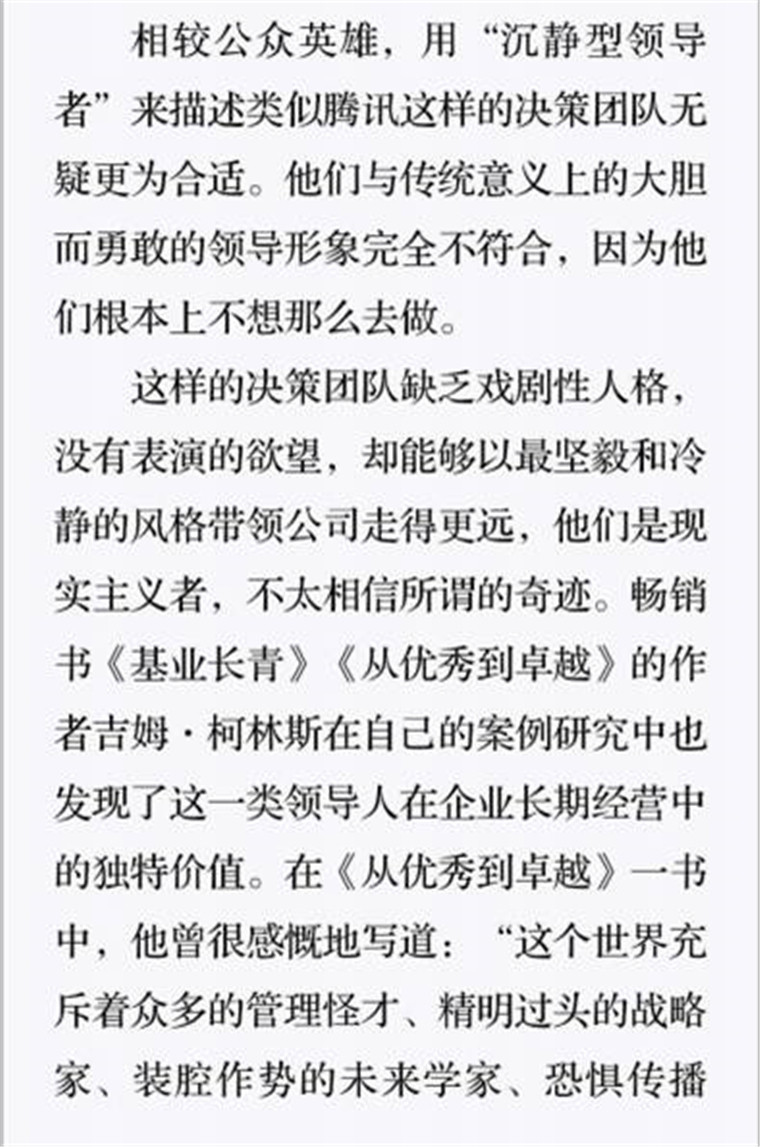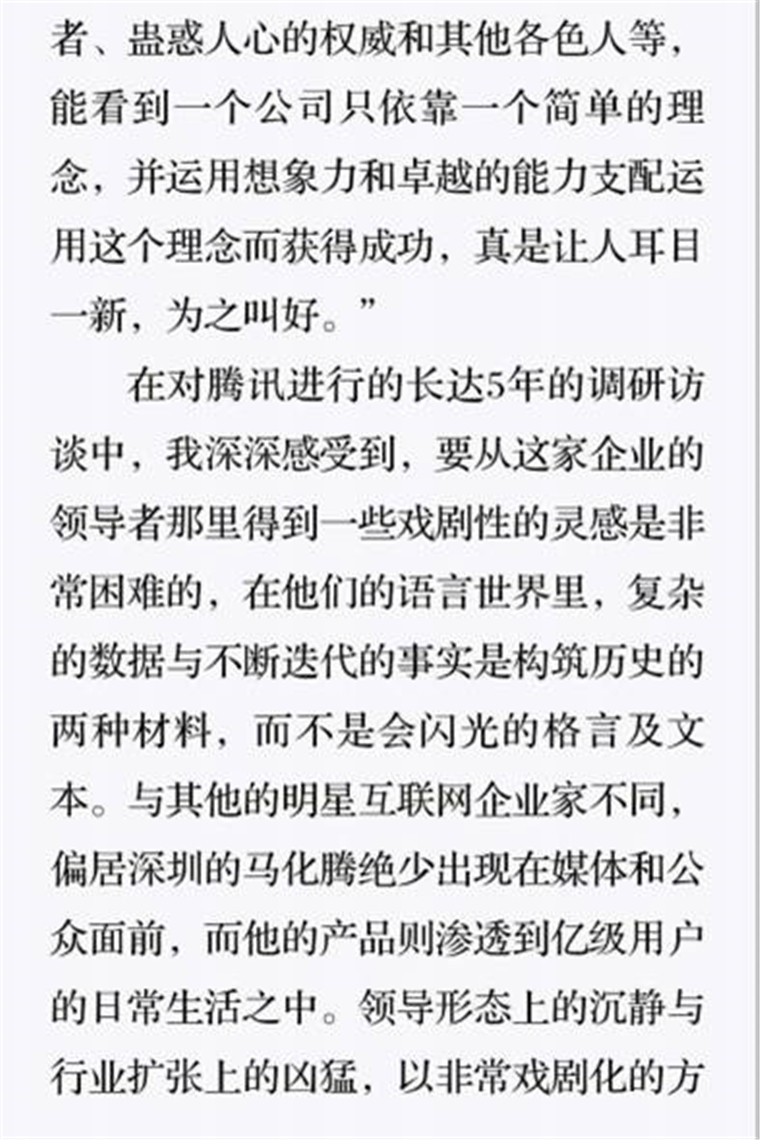 深读之后发现,其实全书真正的核心在于透过腾讯可以观察到的中国企业逻辑,其中很多基于国情而诞生的特殊能力,过去或受诟病或被追捧,而本书作者可以以更加客观的姿态对其进行分析,这无疑是一种当代创业者和企业家应当学习的姿态和能力。