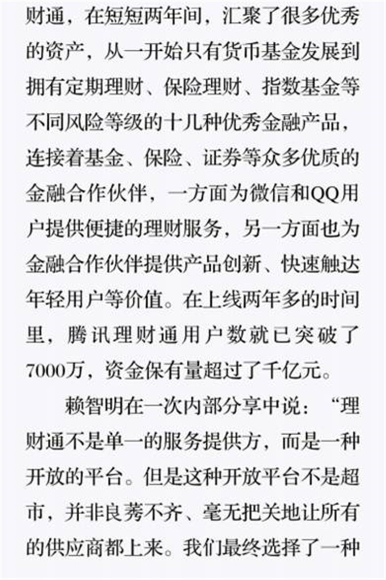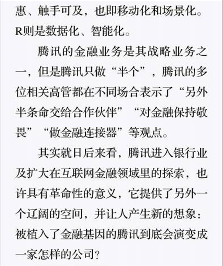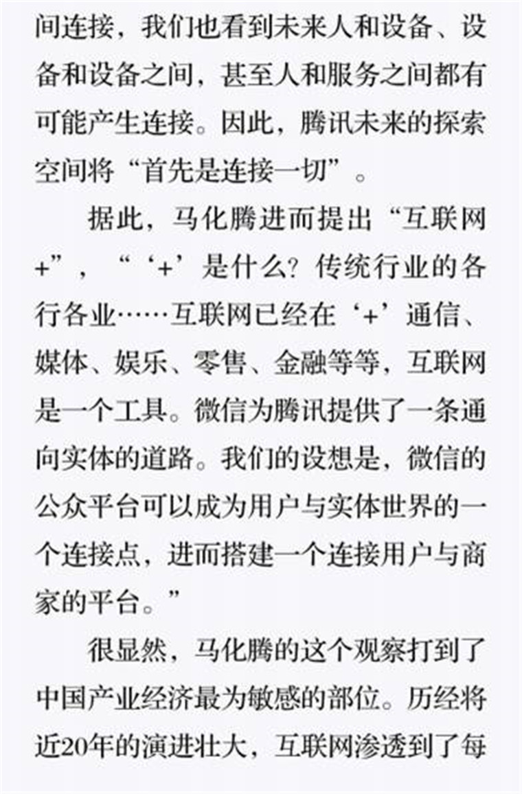 深读之后发现,其实全书真正的核心在于透过腾讯可以观察到的中国企业逻辑,其中很多基于国情而诞生的特殊能力,过去或受诟病或被追捧,而本书作者可以以更加客观的姿态对其进行分析,这无疑是一种当代创业者和企业家应当学习的姿态和能力。